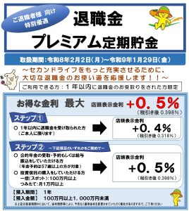 | 商品名 | スーパー定期貯金(単利型)「R8退職金プレミアム定期貯金」 |